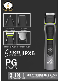 ست اصلاح ۵ کاره MULLINER PG1000B، راهکاری همهکاره برای اصلاح حرفهای در خانه است. این کیت که برای کوتاه کردن، مرتب کردن، مشخص کردن و اصلاح دقیق طراحی شده است، شامل یک ماشین اصلاح موی بسیار پهن، ماشین اصلاح گوش و بینی، ماشین اصلاح میکرو و ماشین اصلاح بدن میشود. با ۶ شانه متصل، میتوانید به راحتی طول اصلاح را برای مدل دلخواه خود، از اصلاح ریش گرفته تا اصلاح دقیق، تنظیم کنید.